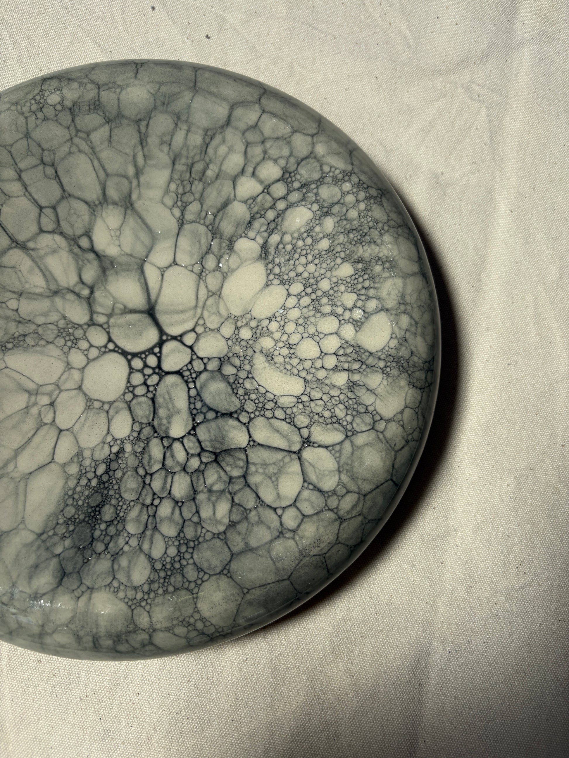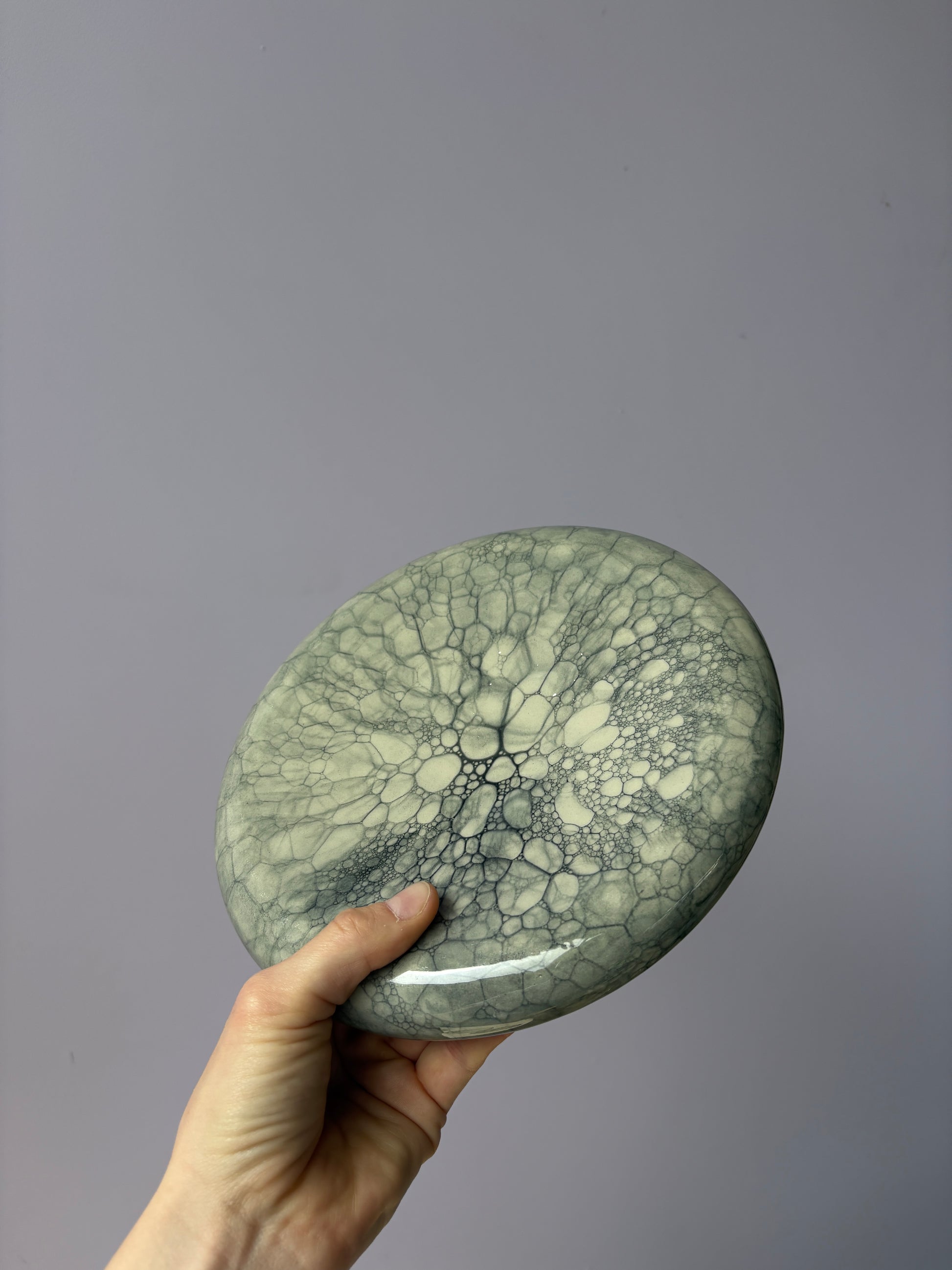 Hoe mooi is dit bord voor fruit, een burrata of een salade? Dit motief is er met glazuur opgeblazen. Er zijn nog twee andere borden beschikbaar die goed stapelbaar zijn met dit bord. Ideale eyecatcher.