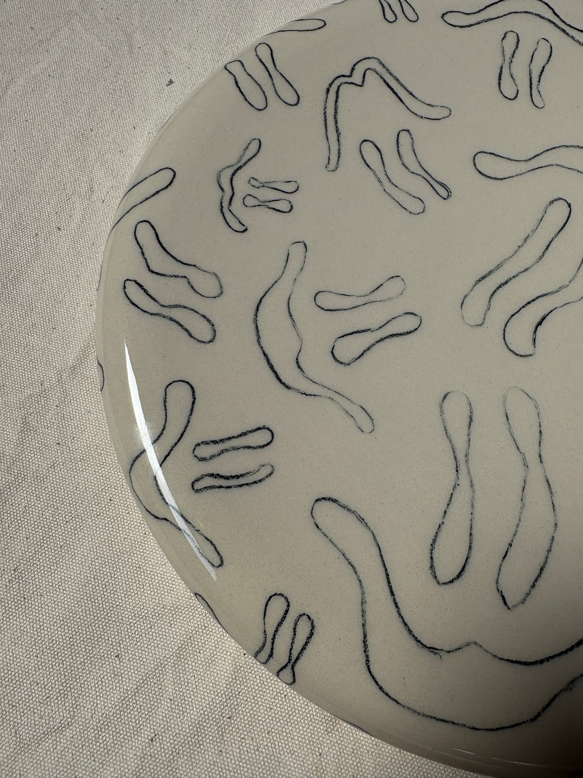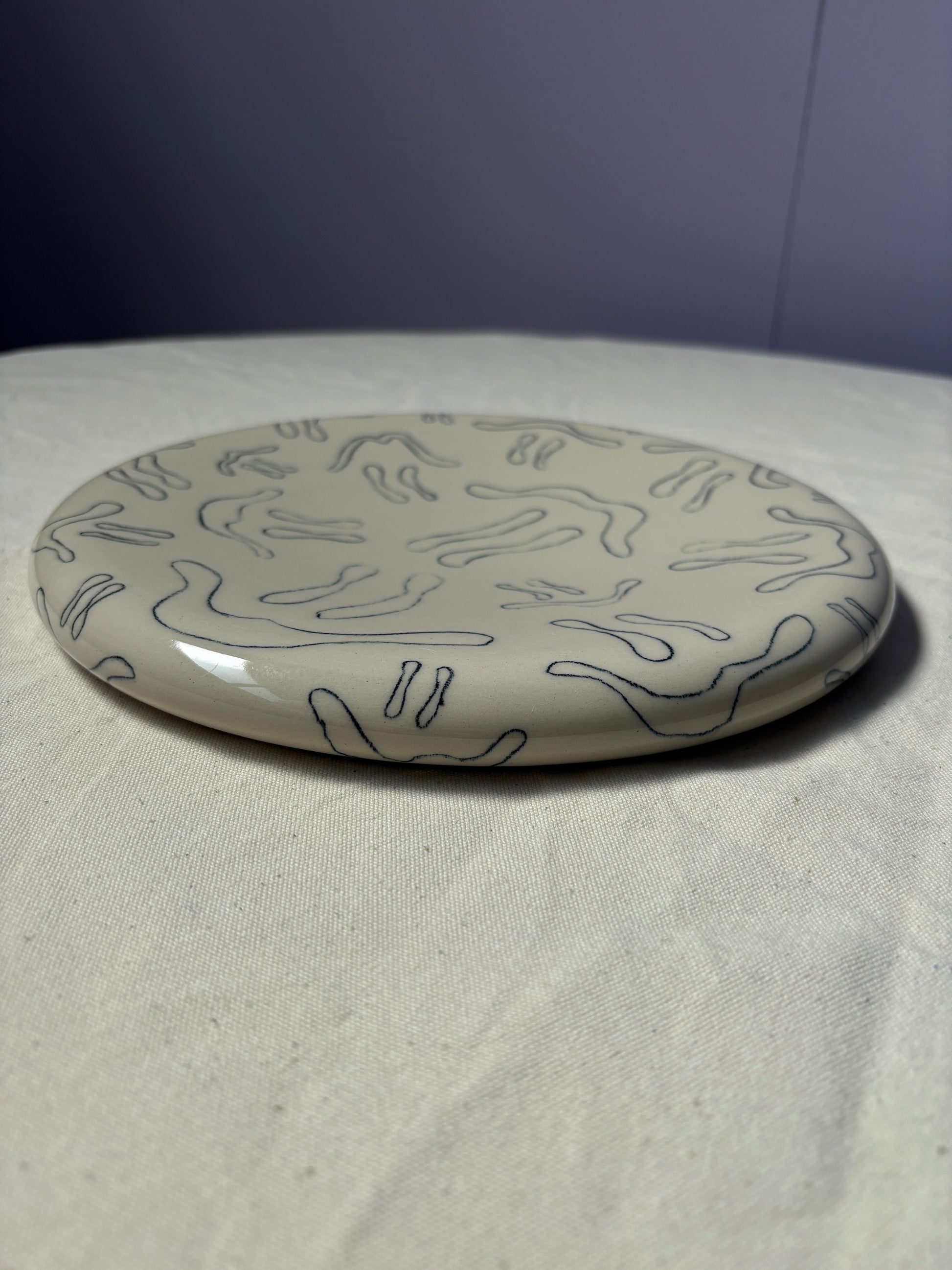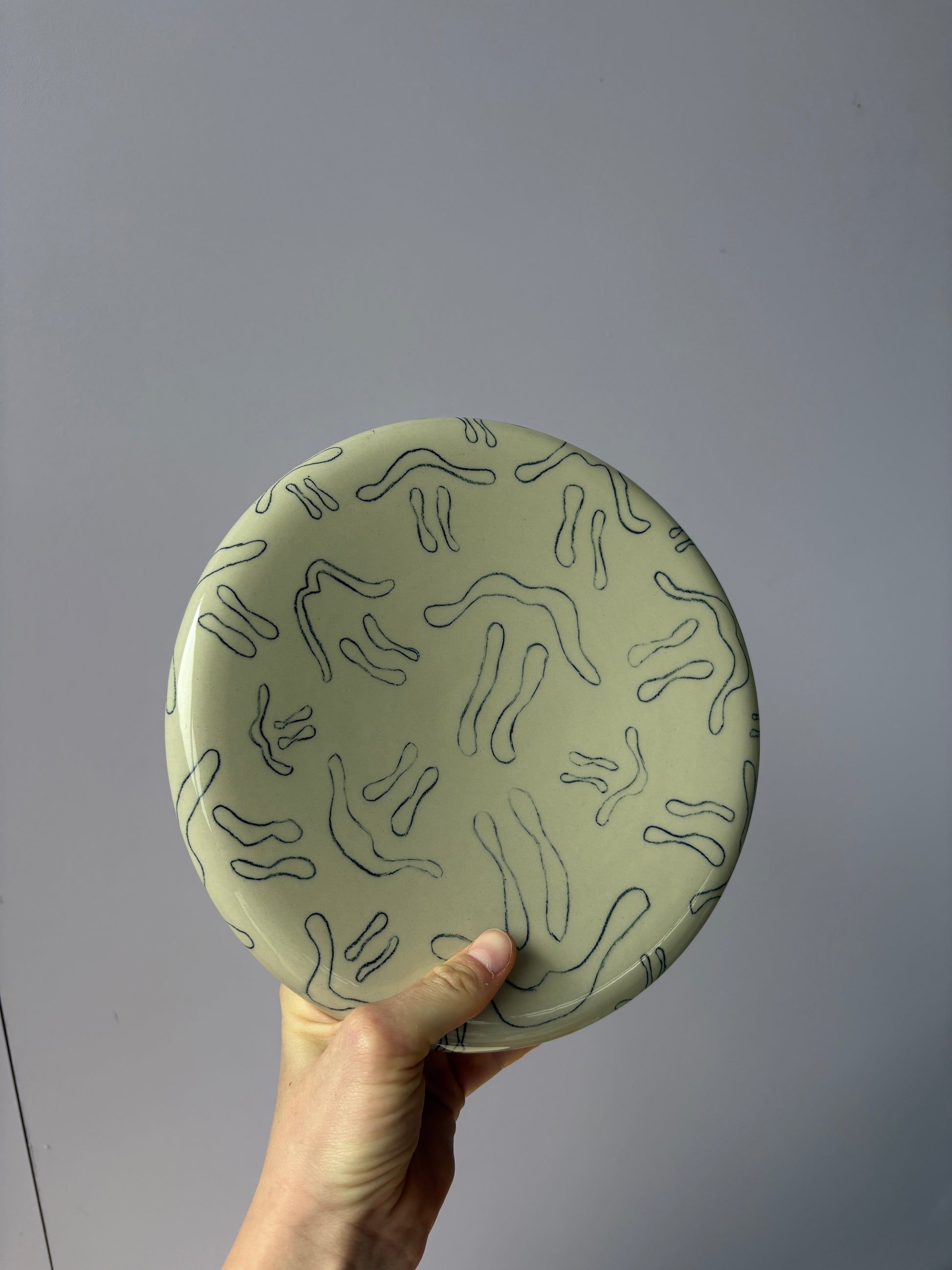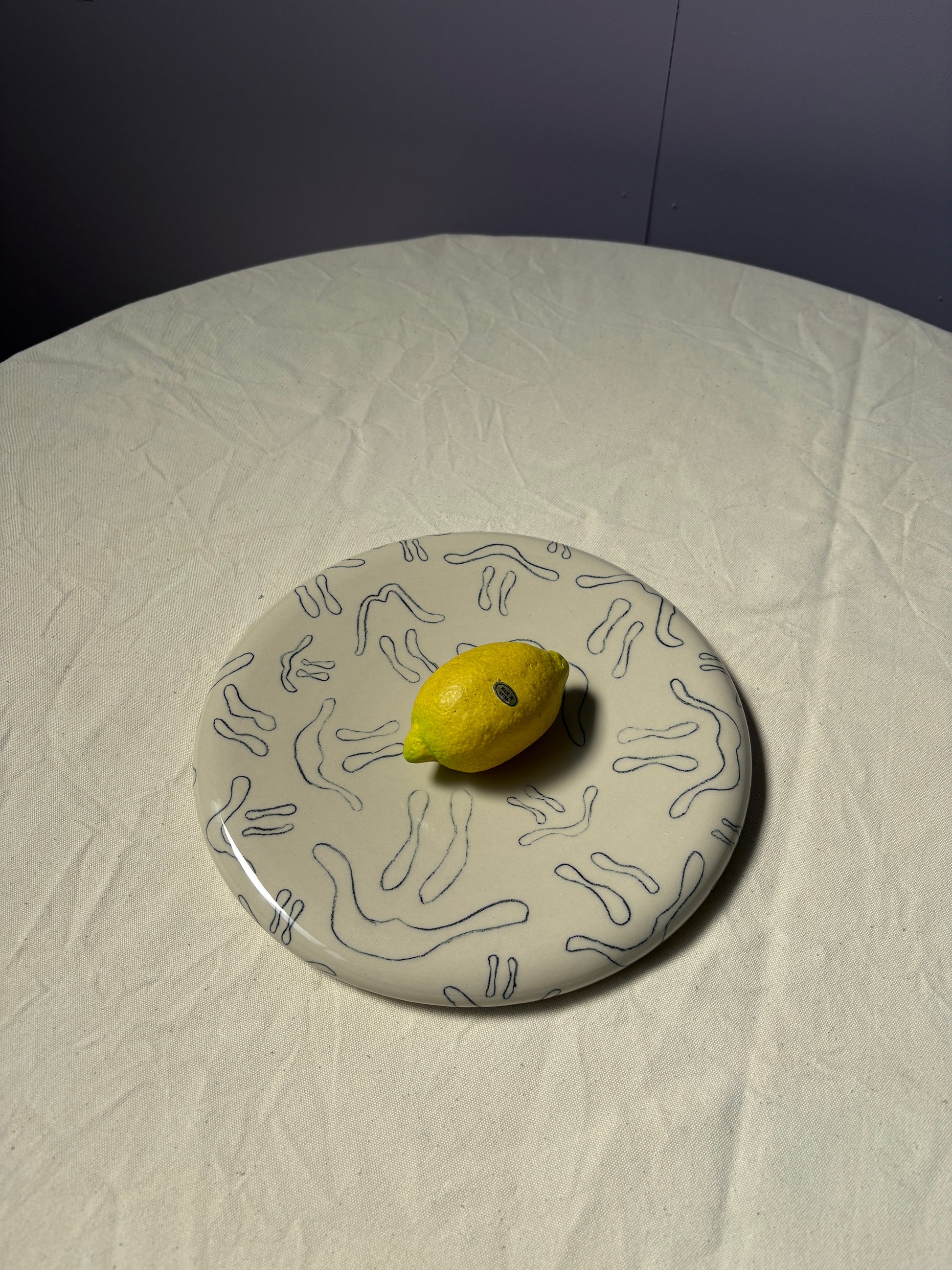 Hoe mooi is dit bord voor fruit, een burrata of een salade? Dit motief is er met glazuur opgeblazen. Er zijn nog twee andere borden beschikbaar die goed stapelbaar zijn met dit bord. Ideale eyecatcher.
