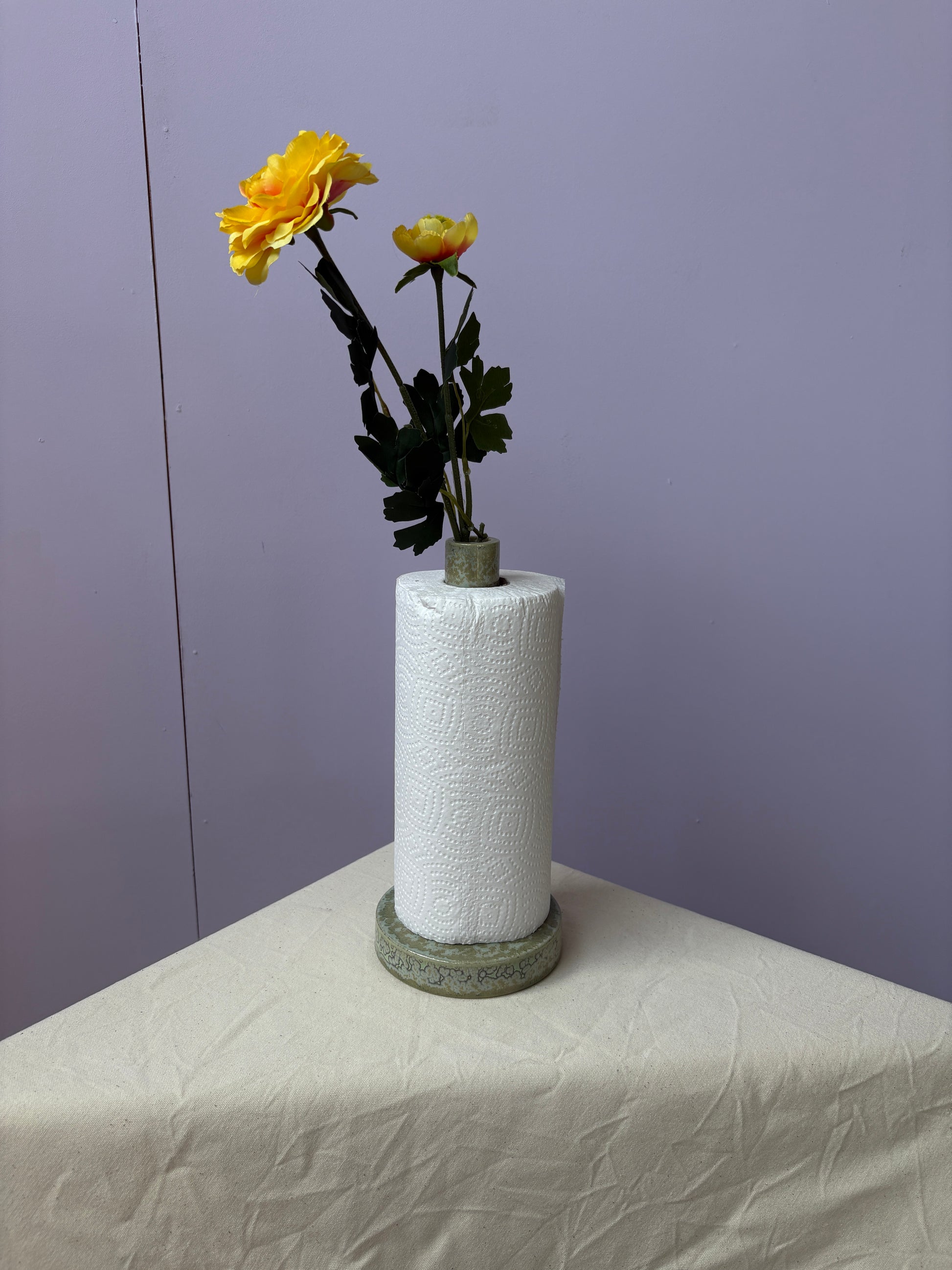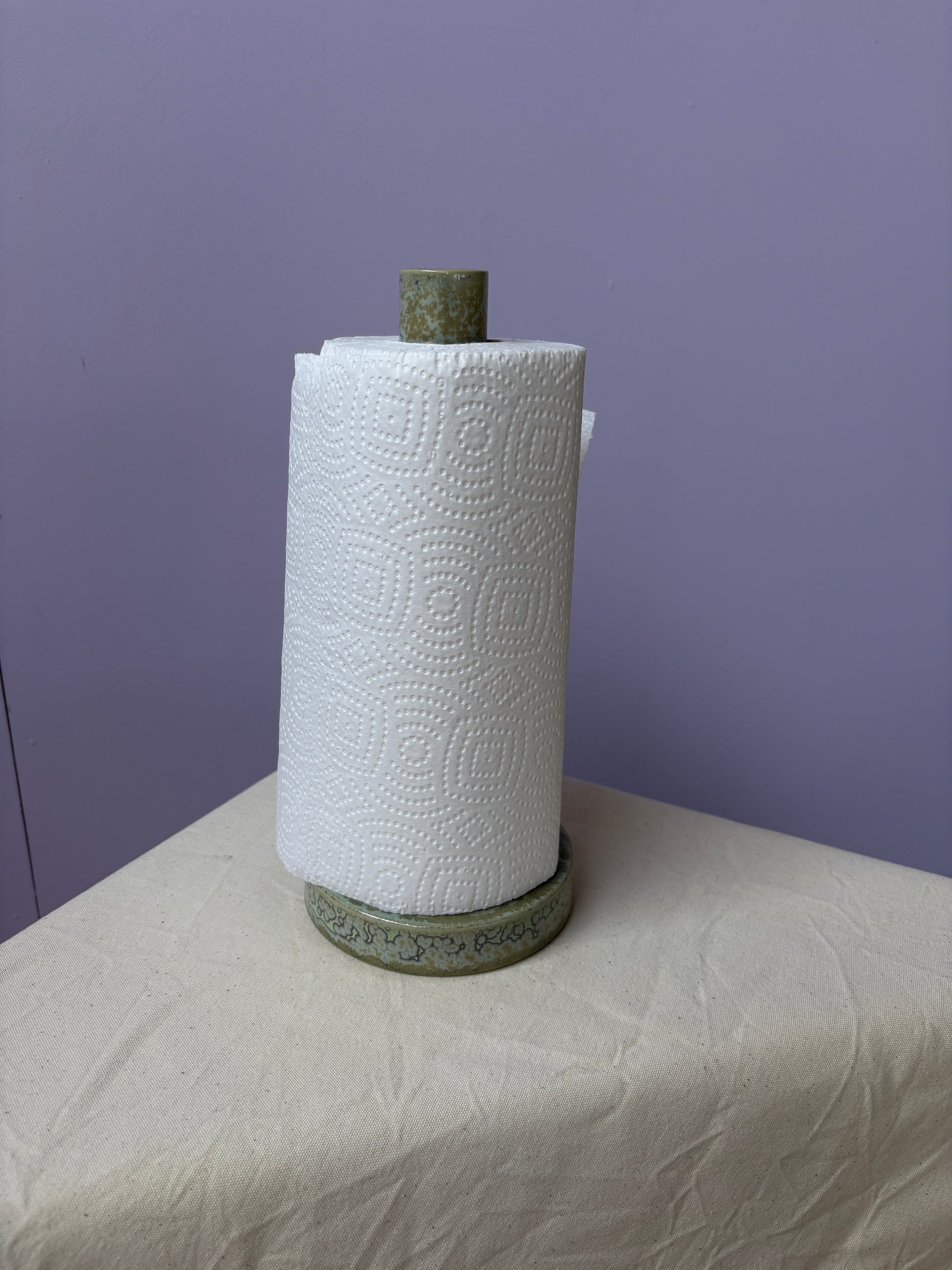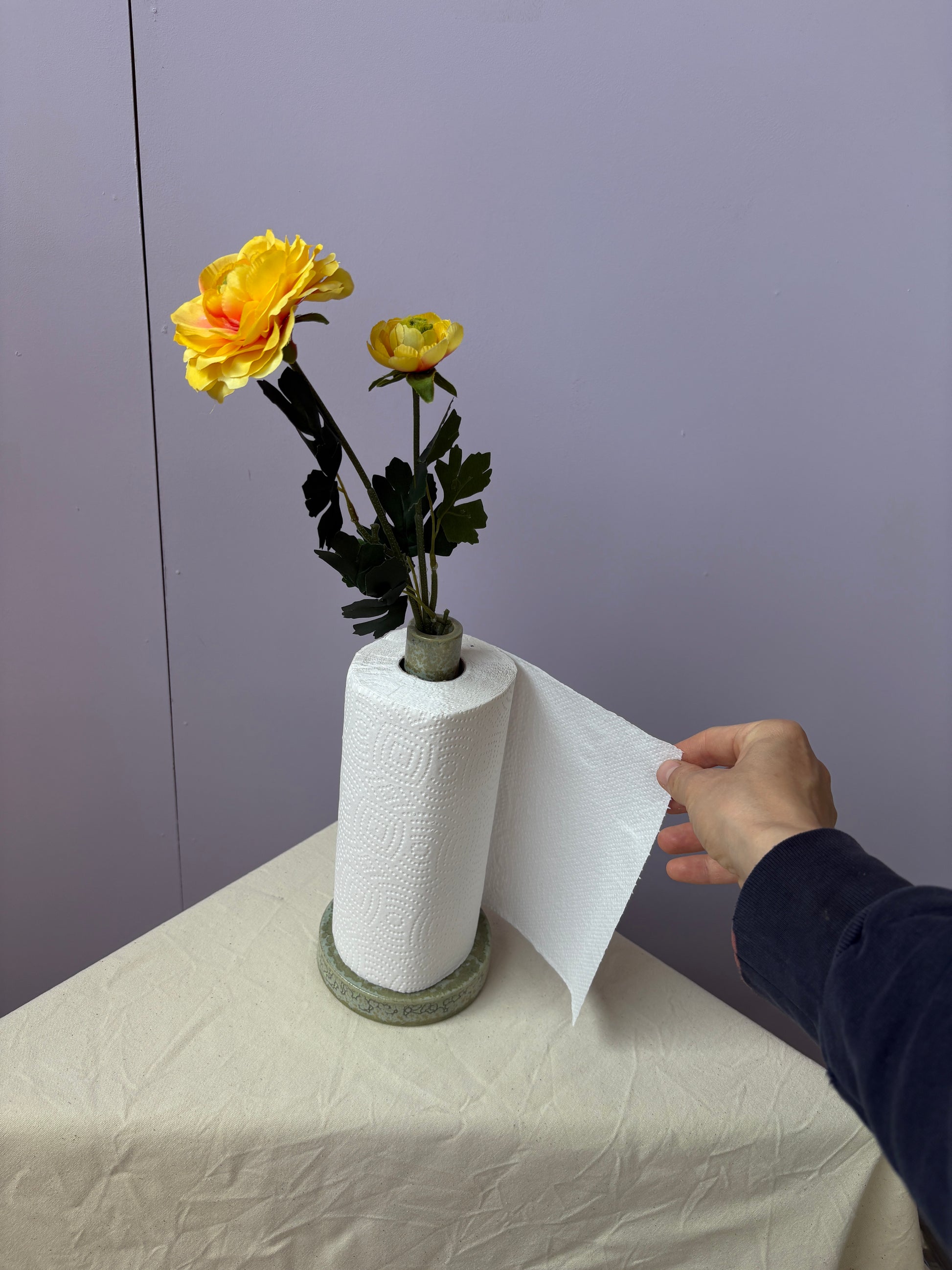 Een keukenrolhouder en vaas in een! Deze keukenrolhouder is een van onze favorieten items. Toen we verhuisden, beseften we ons hoe saai de meeste keukenrolhouders wel niet zijn. Dus kwamen we op dit design uit. Met een hele mooie glazuur (vinden we zelf dan)